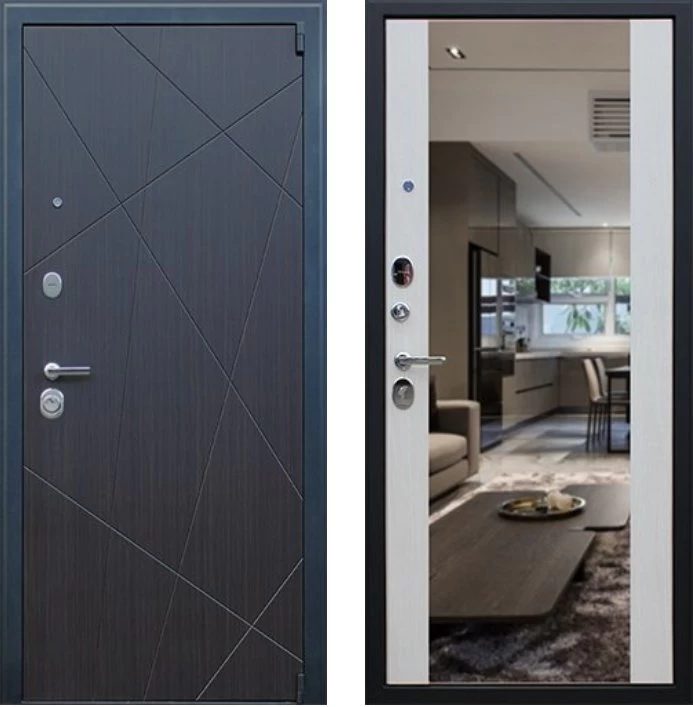 Надежная входная Дверь Вектор с зеркалом премиум класса по цене 49 197 руб. Большая толщина стали защитит от проникновения в ваш дом, квартиру или коттедж. Используется очень качественная фурнитура: замки, цилиндры, ручки, защелки. Покрытие и отделка двери изготовлено под внимательным контролем производителя. Дверь имеет долгий срок службы и гарантию.