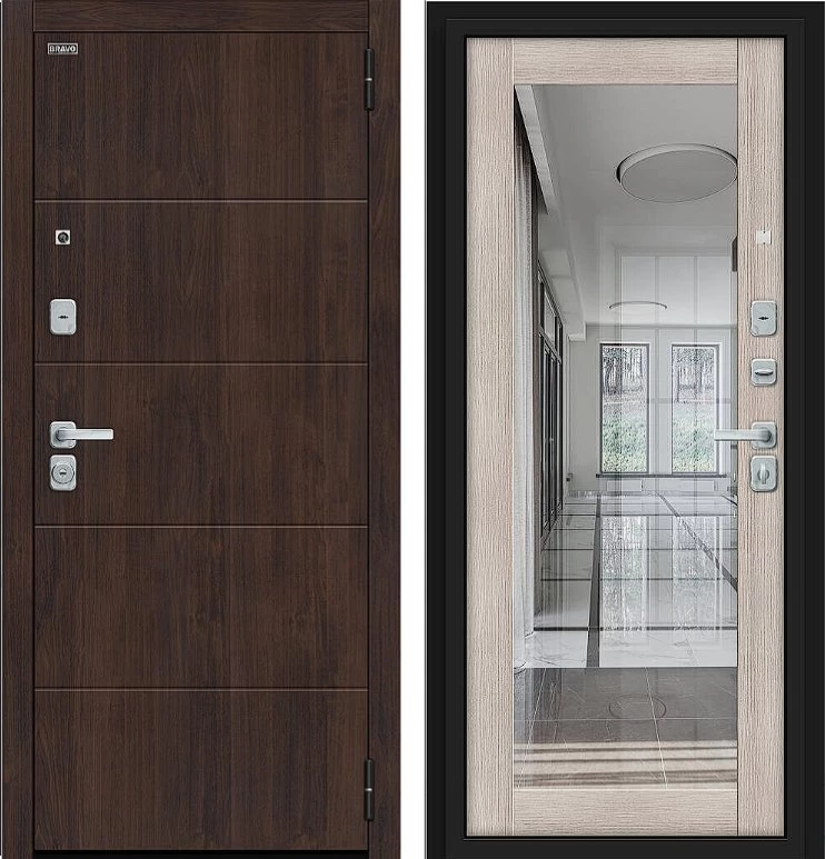 Надежная входная Дверь Браво Флэт/BChrome Almon/Cappuccino Melinga премиум класса по цене 42 747 руб. Большая толщина стали защитит от проникновения в ваш дом, квартиру или коттедж. Используется очень качественная фурнитура: замки, цилиндры, ручки, защелки. Покрытие и отделка двери изготовлено под внимательным контролем производителя. Дверь имеет долгий срок службы и гарантию.