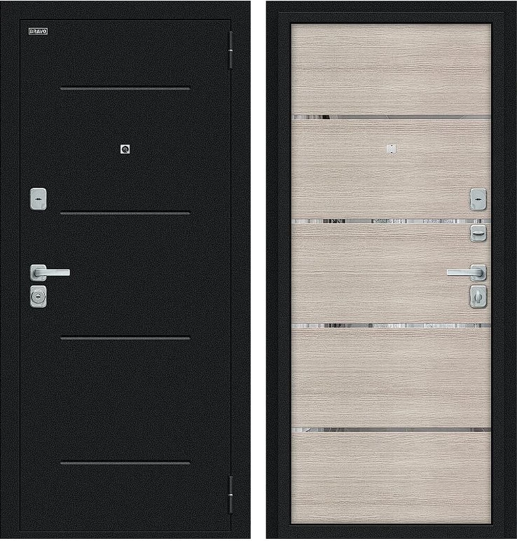 Надежная входная Дверь Браво Лайн/BChrome Букле черное/Cappuccino Melinga премиум класса по цене 33 547 руб. Большая толщина стали защитит от проникновения в ваш дом, квартиру или коттедж. Используется очень качественная фурнитура: замки, цилиндры, ручки, защелки. Покрытие и отделка двери изготовлено под внимательным контролем производителя. Дверь имеет долгий срок службы и гарантию.