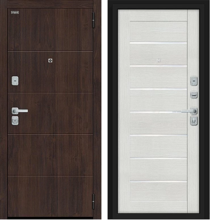 Надежная входная Дверь Браво Прайм/BChrome Almon/Bianco Melinga премиум класса по цене 40 047 руб. Большая толщина стали защитит от проникновения в ваш дом, квартиру или коттедж. Используется очень качественная фурнитура: замки, цилиндры, ручки, защелки. Покрытие и отделка двери изготовлено под внимательным контролем производителя. Дверь имеет долгий срок службы и гарантию.