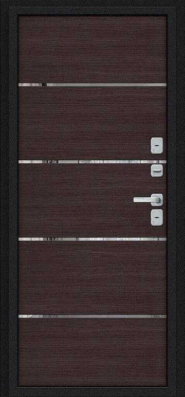 Надежная входная Дверь Браво Thermo Лайн/BChrome Букле черное/Wenge Melinga премиум класса по цене 47 247 руб. Большая толщина стали защитит от проникновения в ваш дом, квартиру или коттедж. Используется очень качественная фурнитура: замки, цилиндры, ручки, защелки. Покрытие и отделка двери изготовлено под внимательным контролем производителя. Дверь имеет долгий срок службы и гарантию.